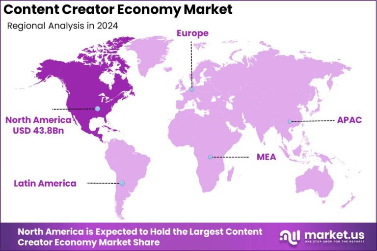 North America dominates the market with a 37.5% share, generating $43.8 billion in revenue, while the U.S. alone accounts for $35.31 billion in 2024, growing at a CAGR of 24.2%. The region benefits from strong digital infrastructure, early adoption of monetization platforms, and a highly engaged audience base. The market trajectory reflects a structural transformation in how content is produced, distributed, and monetized, positioning creators as central players in the digital value chain.