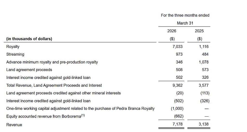“2026 has started strongly for Gold Royalty. These new operating records reflect the success of our acquisition strategy, as recently acquired royalties on the Pedra Branca and Borborema mines contributed significantly to the quarterly result. We look forward to continued GEO growth as the year progresses.” – David Garofalo, Chairman and CEO