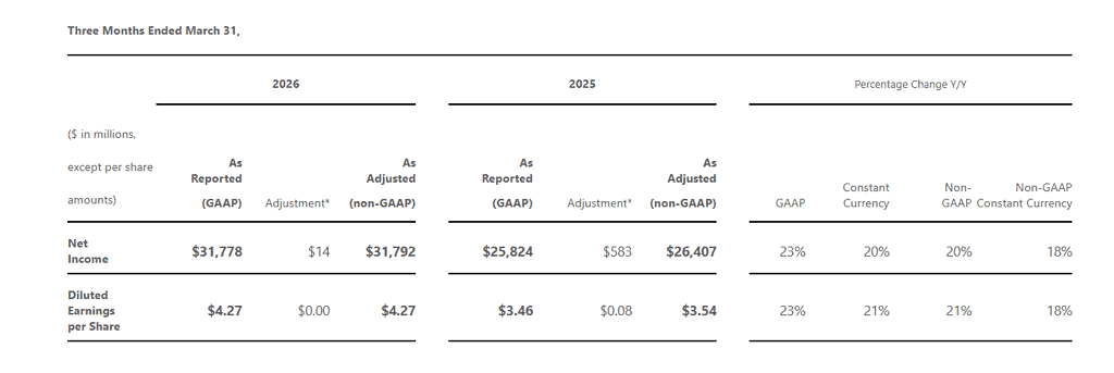 - Net income on a GAAP basis was $31.78 billion, showing a 23% increase compared to the previous year.