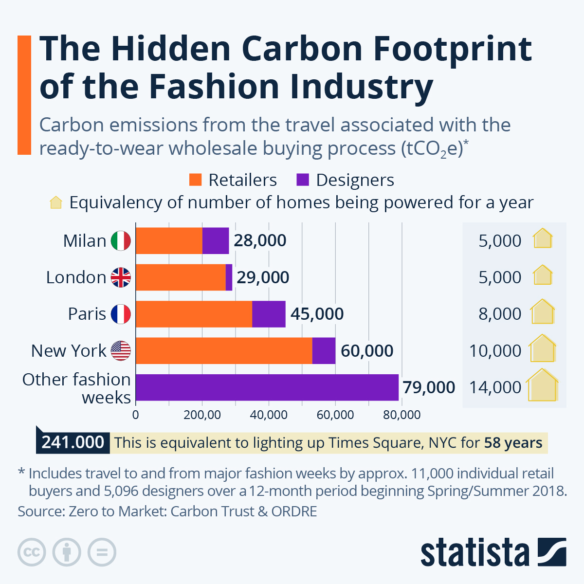 - The above chart shows the fashion industry’s hidden carbon footprint and the carbon emissions from the travel associations associated with the ready-to-wear wholesale buying process