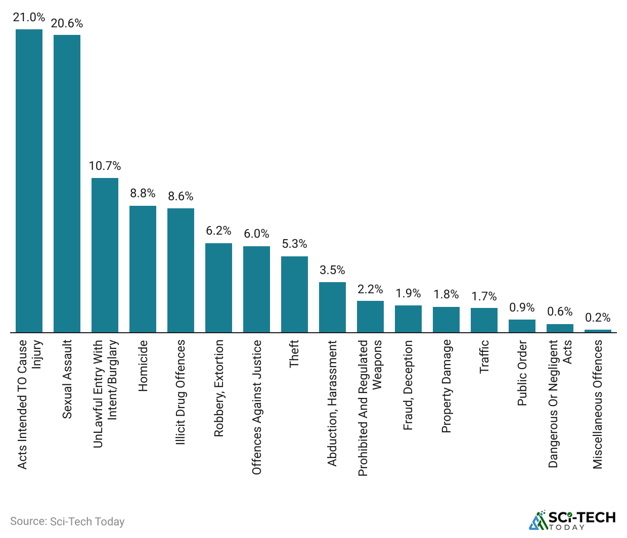 - Prison Statistics also mentioned that, in the prison population, 21% was made up of acts intended to cause injury offenses.